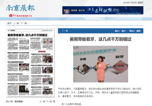 1、《南京晨报》:暑假带娃看牙,这几点千万别错过//njcb.xhby.net/mp2/pc/c/201907/28/c664574.html