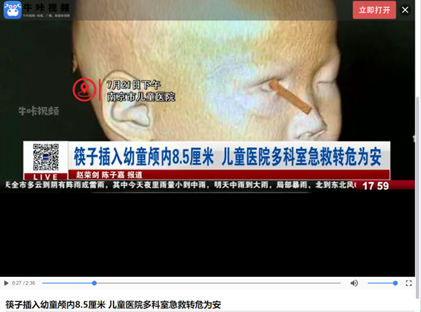 11、牛咔视频:筷子插入幼童颅内8.5厘米 儿童医院多科室急救转危为安//m2.nbs.cn/video/183255.html