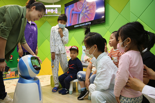 “平平安安慈善科普小屋”是91直播 继爱佑银城童馨小屋、迪士尼欢乐屋、童馨乐园后第六间既具备儿童游戏活动又提供健康科普宣教功能的慈善科普小屋,旨在为患儿提供一个温馨、童趣的住院空间,同时也为病区提供了科普健康宣教的阵地。小屋里的智能机器人、互动投影等高科技设备使孩子感受到高科技的神奇,同时,寓教于乐,学习到科普知识,养成良好的卫生习惯,让更多的家长朋友们获益,让病房里的孩子不会成为被义务教育遗忘的角落。专业的医务社工提供服务,根据患儿适应、心理和发展需求设计提供游戏治疗、艺术表达等形式多样的主题活动。通过“平平安安”慈善科普小屋,丰富患儿的住院生活,舒缓住院期间可能产生的焦虑、恐惧情绪,让小朋友们开心、快乐、满意,帮助其更好地适应医院环境、增加医患关系的融洽,促进患儿的康复。