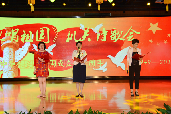 一曲慷慨激昂的《我的祖国》拉开了晚会大幕,机关人歌唱着《红旗飘飘》、《东方之珠》、《强国一代有我在》、《大中国》、《走进新时代》,吟诵着新时代的交响乐,朗诵着《美丽中国》、《可爱的中国》、《我爱这土地》&《我的祖国》、《我骄傲,我是中国人》、《沁园春·雪》、《在秋天,说出祖国的名字》,演绎祖国70周年的难忘岁月。