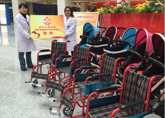 2016年01月28日上午南京儿童医院医学发展医疗救助基金会在南京儿童医院河西院区举行了儿童轮椅及小推车的捐赠活动。根据基金会章程,支持儿童健康事业发展,此次基金会共捐赠儿童轮椅5辆,婴幼儿推车5辆,并根据门诊病人需求还将增加捐赠数量。