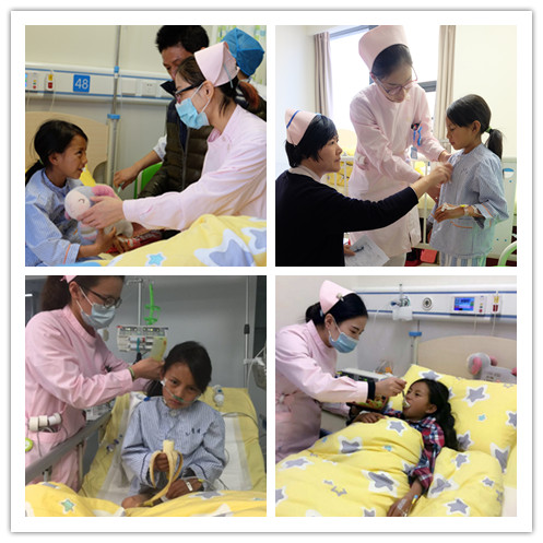 小花在继父和表叔的陪伴下顺利来到南京儿童医院,在这个陌生的城市、陌生的医院里,医院的医生、护士以及南京扶众公益和紫金信托的志愿者们给予于满满的爱,大家轮流陪伴着小花,除带给她可爱的玩具、美丽的新衣服,提供生活用品外,还带着小花讲故事做游戏;特别是管床护师冯阿姨了解到小花特殊遇境,向妈妈一样关心呵护她, 以至于小花对冯阿姨十分依赖,她说只要冯阿姨在,我就什么不怕。