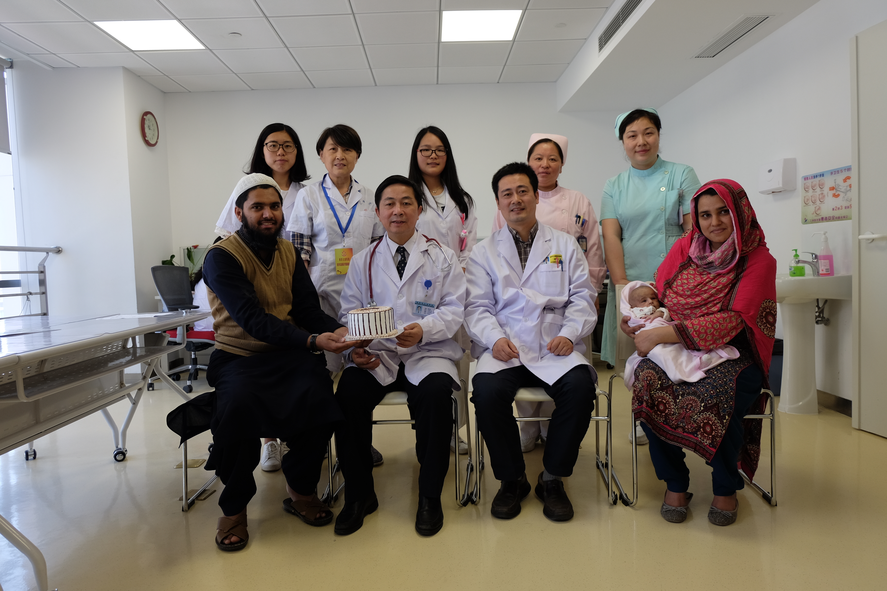 5月19日,各方面检查显示,小默罕默德消化道的恢复良好,没有出现并发症,可以回家休养,等到5个月后再来院进行心脏方面的手术。出院当日阿萨德夫妇特意订制了生日蛋糕,与心胸外科的医护人员和基金会志愿者们一起为“中国宝宝”庆生,分享“中巴兄弟情”。