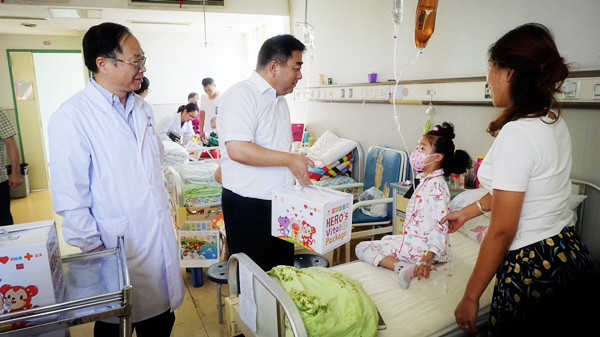 9月14日上午,江苏省红十字会赵凯副会长一行5人来到91直播 广州路院区,为319病区血液肿瘤科的小朋友们送上“英雄能量包”,并带去温馨的祝福,祝愿他们早日康复。院党委书记、医学发展医疗救助基金会理事长金福年一同参与活动。