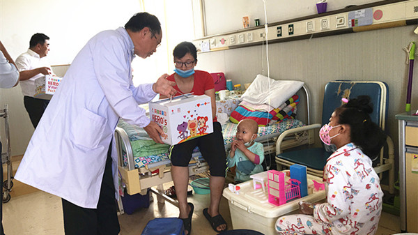英雄能量包多功能包装箱内包含魔方、油画棒、素描本、彩泥、小牛顿绘本、折纸等益智类游戏用具,小朋友们收到后非常喜欢,摆弄不停。住院患儿及家庭在收获欢乐的同时,也感受到医院、省红字会及社会爱心人士满满的关爱与支持。