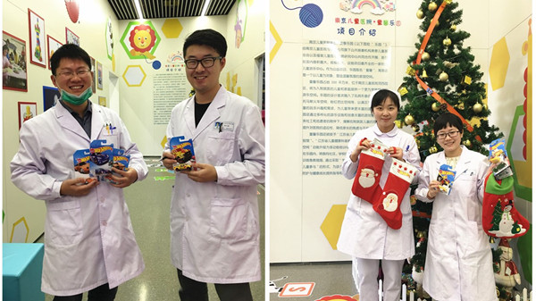 医务社工们携手病区,为住院的孩子们送上精美的礼物,并祝福他们新春快乐,早日康复。