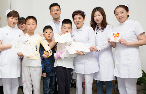 每一份礼物传递着真挚的心意,小朋友和家长们对护理人员的感谢和祝福让医院沉浸在温馨快乐的氛围之中。